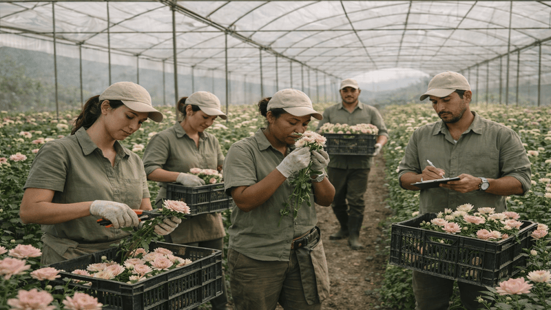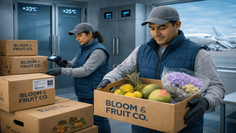 Cada flor y fruta se selecciona a mano y se empaca cuidadosamente para preservar su frescura y forma natural.